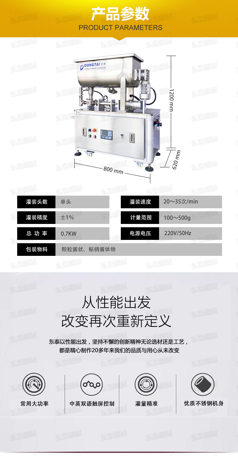 1.防滴漏灌裝頭:316L不銹鋼精制而成,專為醬料灌裝設計,通過型好,內外精拋,真正的食品級