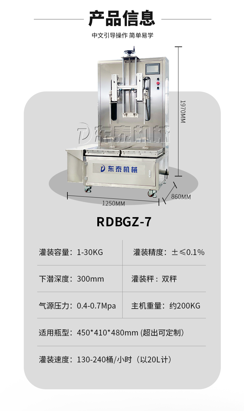 灌裝容量:1-30KG(適用瓶型450*410*480,超出另行定制)