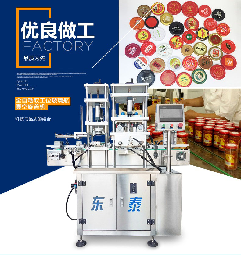 3.該機(jī)主要由瓶子輸送模塊、理蓋模塊、電動取蓋模塊、旋蓋模塊、抽真空系統(tǒng)、電控模塊組成,設(shè)計緊湊,自動化程度高,操作簡便,節(jié)省人工。