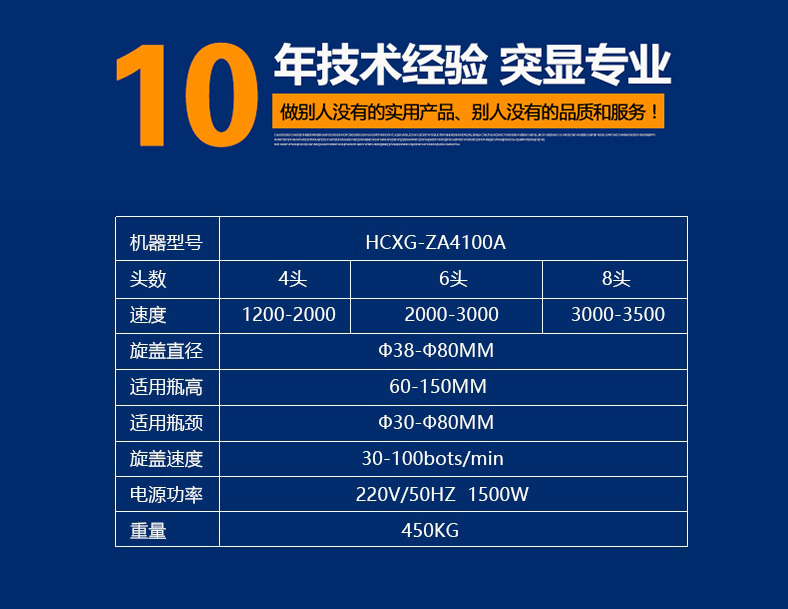 6.旋蓋機(jī)構(gòu)高度可快速調(diào)節(jié),可適用相同口徑、不同高度的瓶子旋蓋;更換部分零件即可實現(xiàn)不同瓶徑、不同口徑的旋蓋,更換快捷方便。