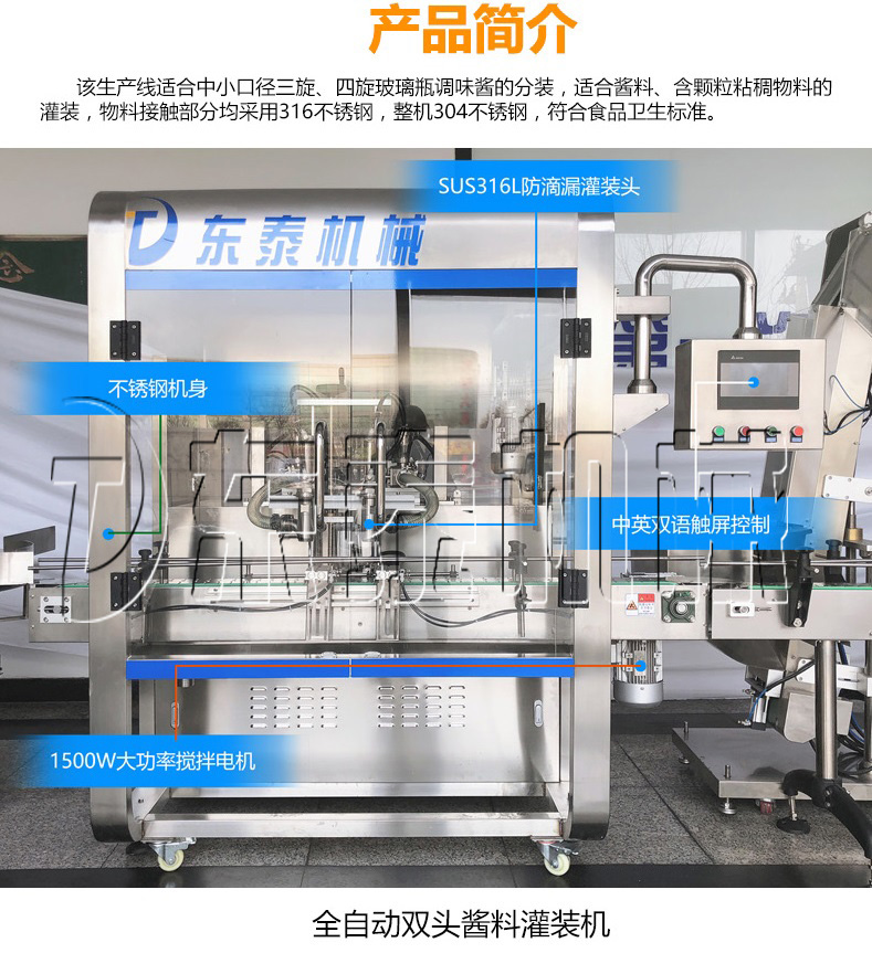 目前的生活水平的提高,也致使了更多人開(kāi)始在吃上做起文章。生活中的人們對(duì)于吃的要求越來(lái)越高,對(duì)味道的追求近乎狂熱,如今市場(chǎng)上的辣椒醬灌裝機(jī)在使用過(guò)程中操作的實(shí)際操作降低了人員要求并且才做簡(jiǎn)單對(duì)操作眼的專業(yè)要求也在不斷降低,這大大節(jié)省生產(chǎn)成本,深受廣大用戶的歡迎。為了保證醬料的效果能夠穩(wěn)定持久,這款辣椒醬灌裝機(jī)裝有接料槽,防止調(diào)試的時(shí)候或者出故障的時(shí)候物料灑地上以及清理麻煩,走進(jìn)超市放眼望去五花八門的辣椒醬,由此可見(jiàn)辣椒醬灌裝機(jī)的未來(lái)的潛力有多大的。